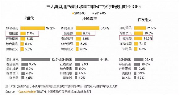 3.5 三大典型群组在即时通讯的时长占比均有所下降,短视频老少皆宜且增长迅猛