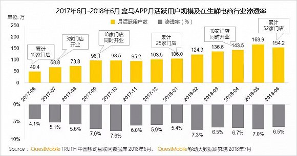 III、阿里表现同样强势,盒马鲜生门店扩张,盒马APP月活跃用户规模同比增长212%
