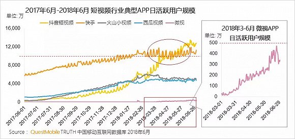 在头条系三款产品的围剿下,快手DAU仍稳定在亿级以上,抖音短视频自上线以来经过20个月的发展,日活破亿;微视迅速崛起,日活近500万仅用3个月时间。