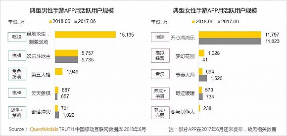II、典型男性手游以竞技类、休闲类为主,典型女性手游以养成类、休闲类为主