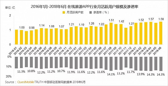 I、2018上半年,在线旅游APP行业月活跃用户规模稳定在1.5亿以上