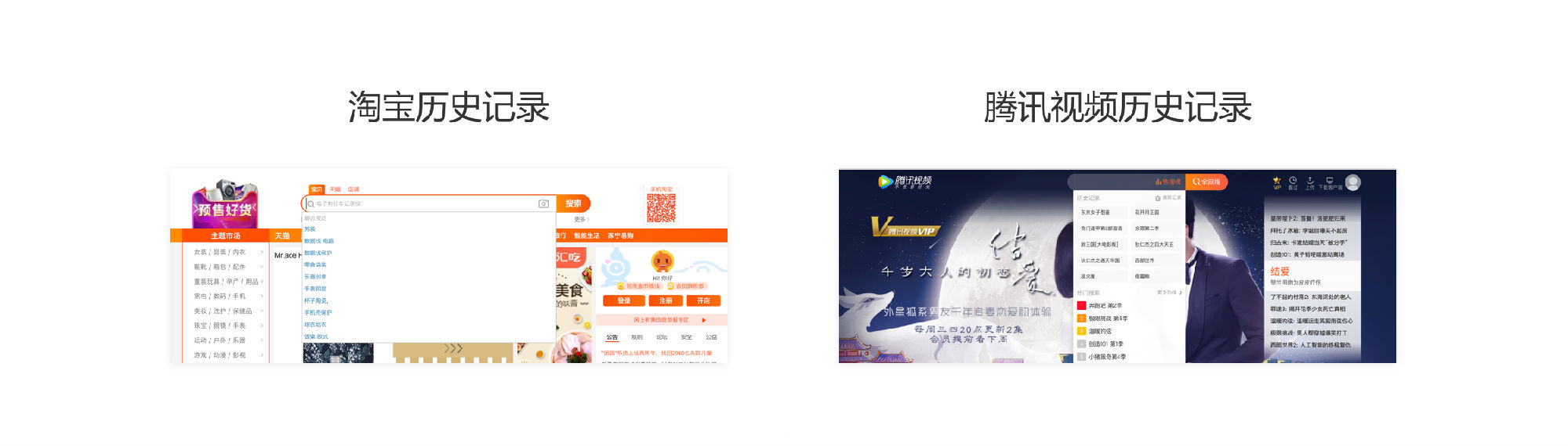 历史记录:历史记录能够在用户重复搜索时提高效率,一般会在数目上做限制,腾讯视频的历史记录最多展示 10 条,百度搜索最多展示 9 条,由于受页面空间和时效性的限制,尽量不要展示 10 条以上。此外,考虑到用户隐私的问题,历史记录还需要支持删除。