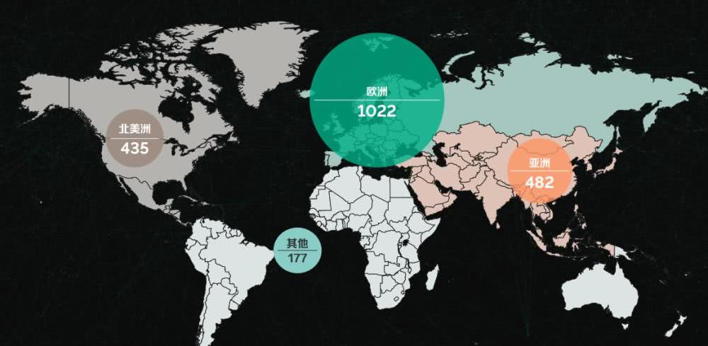 一,区块链项目分布:在全球共计2116个区块链项目中,欧洲数量最多,高达1022件,北美和亚洲分别为432件和485件。