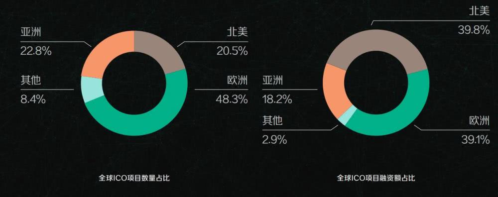 二,全球1CO情况:在有注册地信息的 2116 起融资事件中,欧洲项目融资事件最多,高达 1022 起,占比 48.3%。亚洲排名第二,占比 22.8%。北美融资事件 435 起,占比 20.5%。