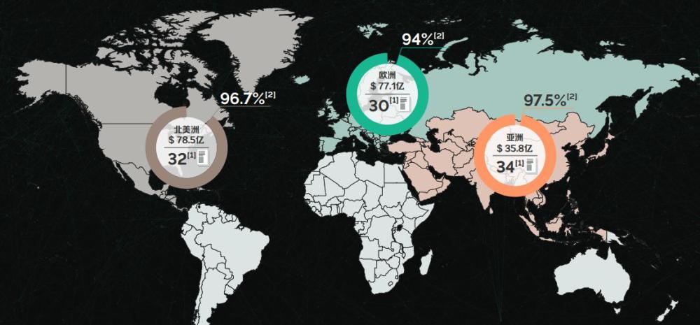 三,在全球区块链项目资料详实度方面,亚洲方面平均每个项目有34页的白皮书,北美洲有32页,欧洲有30页。