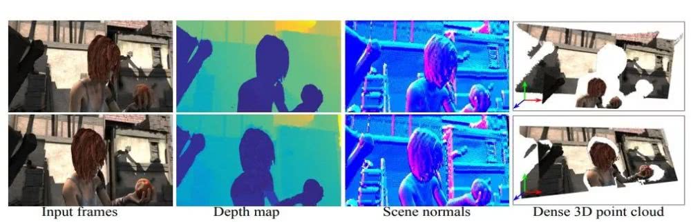 图三 从视频的两个不同视角的帧重建出复杂动态场景的点云