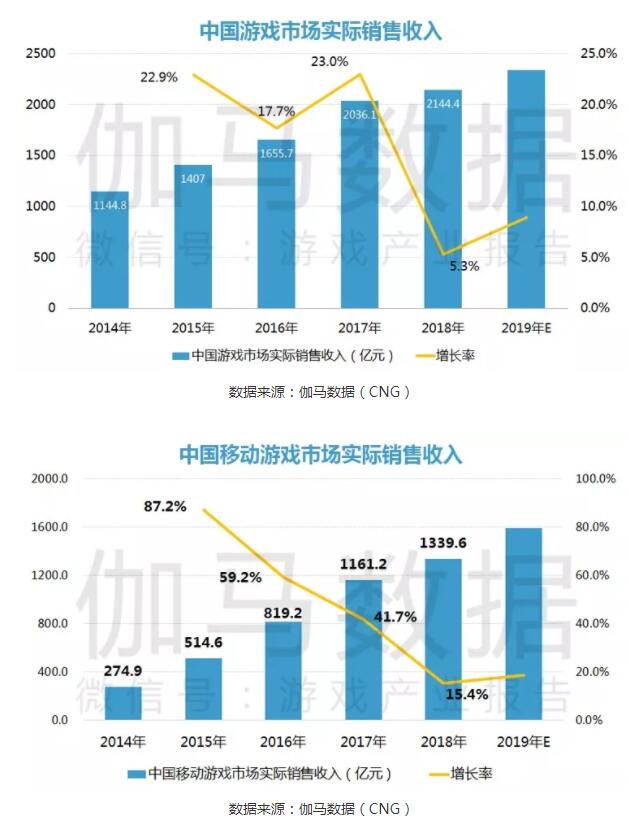 伽马数据联合腾讯发布了《 2019 游戏产业趋势报告》。报告显示, 2019 年,中国游戏市场实际销售收入将超 2300 亿元,其中,移动游戏市场实际收入将超 1500 亿元。