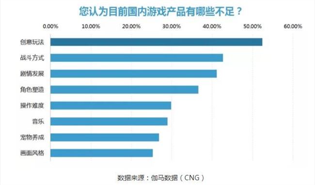 在对游戏用户的需求调查中,超五成受访者认为当下国产游戏缺乏创意,还有超四成的受访者认为国内游戏的战斗方式和剧情发展表现平平。角色塑造、操作难度和音乐也是影响游戏体验的主要因素。此外,服务器卡顿掉线等问题是游戏体验的最大痛点之一。超过三成用户因类似原因出现流失。