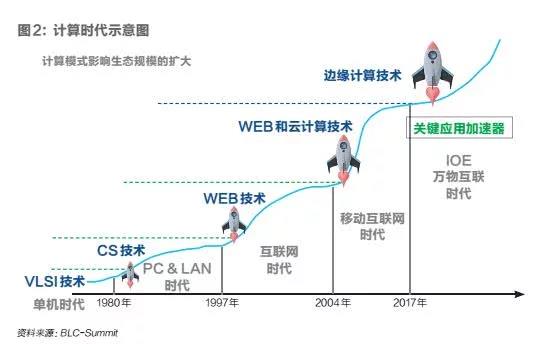每一个计算模式下,我们都需要基础技术、基础设施,最重要的还要有关键应用加速器。在单机时代,VLSI是基础技术,高级语言和操作系统是关键应用加速器;进入PC&LAN时代,我们制造了微处理器,而DOS和Windows成为关键应用加速器,更是让计算机走到了我们每一个人的身边,也让人亲身感受到计算机的力量。